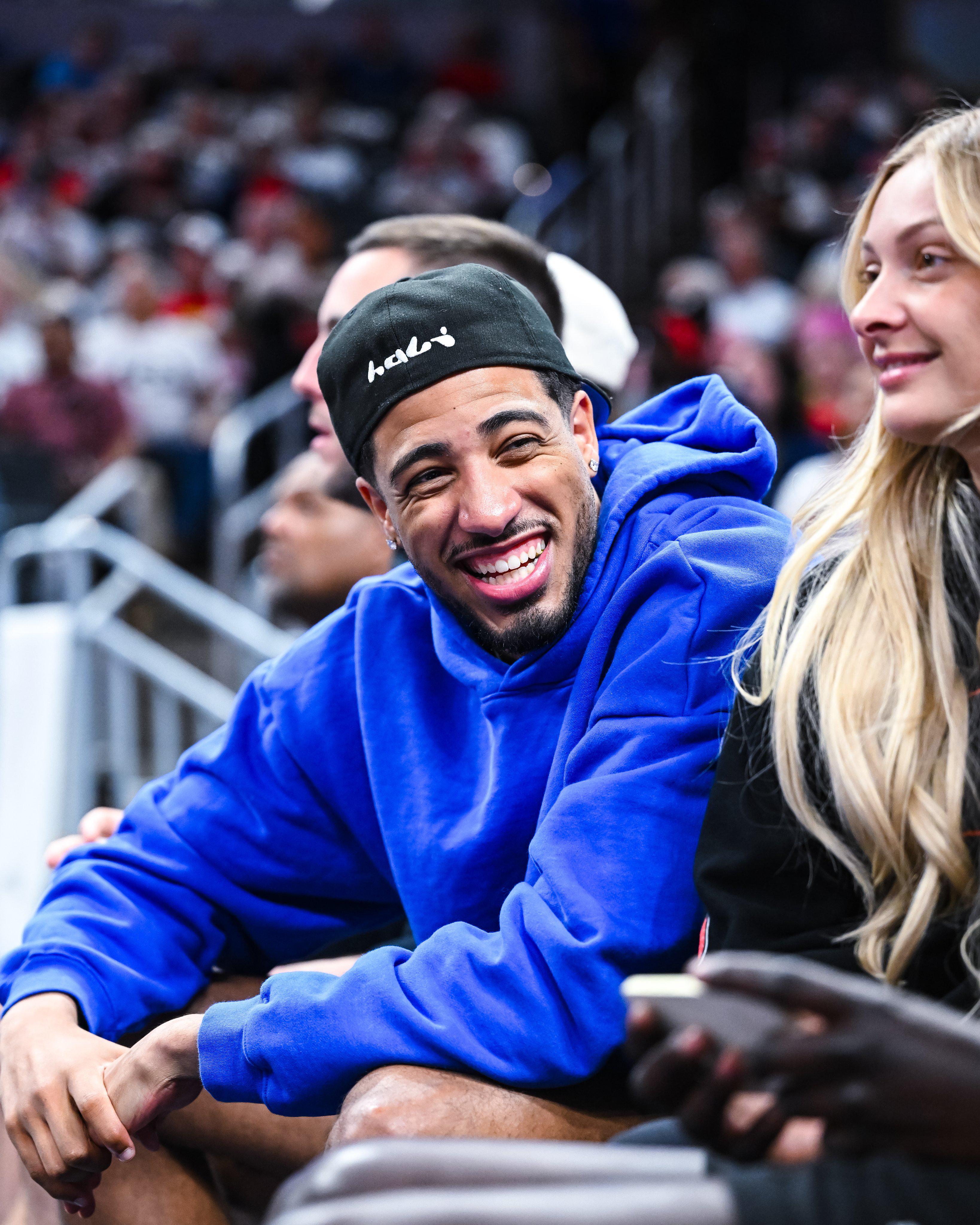 笑容满面!步行者官方晒哈利伯顿现身狂热主场观战