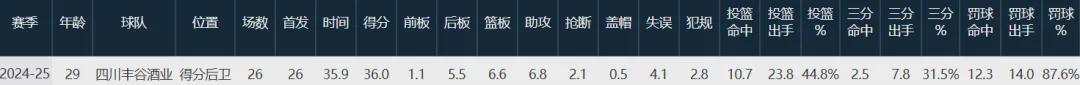 这哥们出生于1995年12月31日,今年29岁正处于当打之年,身高1米93的双能卫,17届次轮第22号秀,过去的NBA生涯分别效力于步行者和篮网,常规赛场均出战14分钟贡献6.2分1.5板1.1助,季后赛则是场均出战9.4分钟得到1.2分1.6板。